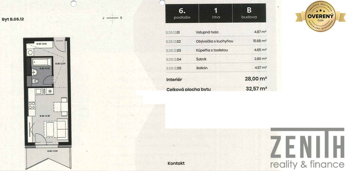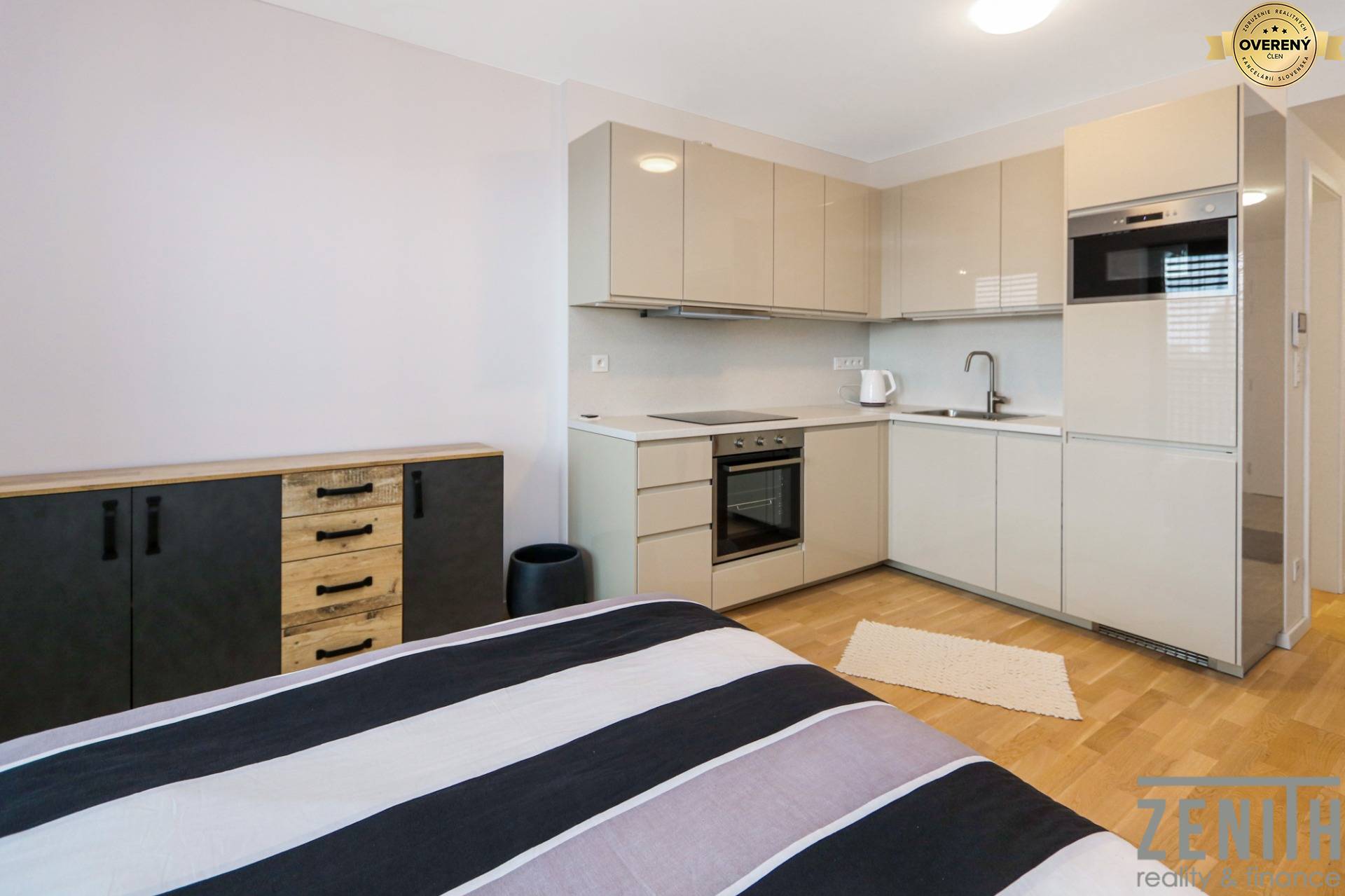 Zenith reality ponúka exkluzívne na predaj útulný, úplne nový 1 izbový byt vo vyhľadávanej lokalite v projekte GUTHAUS. Dispozícia bytu pozostáva zo vstupnej chodby a šatníka, toalety spojenej s kúpeľňou a z jednej izby, z ktorej sa vychádza na...